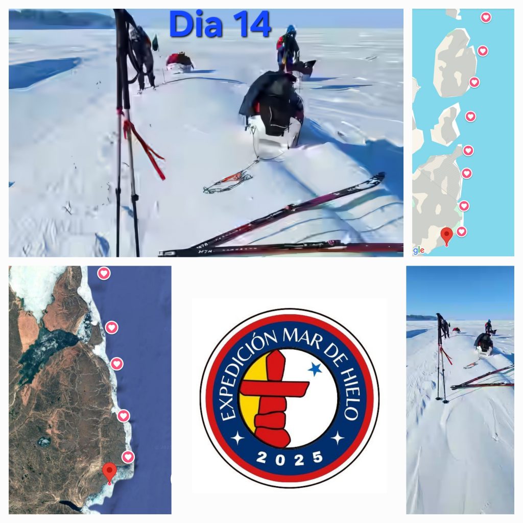 Encontramos unos grandes bloques de hielo, con ellos hemos hecho una trinchera de nieve y hemos enterrado la tienda.