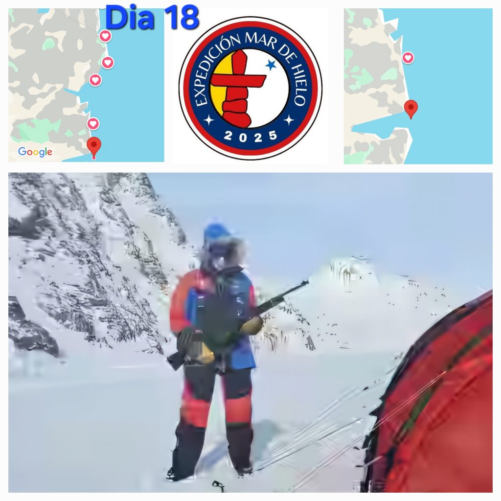 Hoy el terreno era mixto, con dunas de nieve. Por la tarde empezó a soplar el viento del Este y hemos tenido que hacer un muro de bloques de nieve para protegernos. ❄️❄️