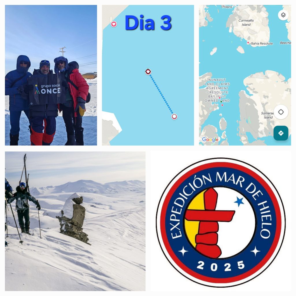 «Campamento dos, viento sur sureste sensación térmica -31 vamos por el meridiano 97 oeste siguiendo los pasos del capitán Brown en la búsqueda de Franklin, vamos costeando por la isla del príncipe de Gales, vamos con mucho peso y mañana acampamos y no salimos porque hay mucho temporal»