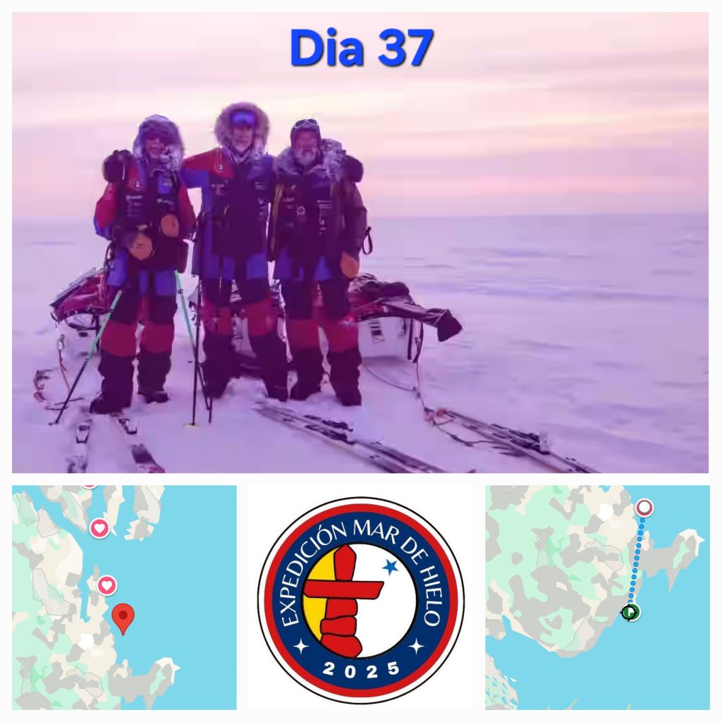 En tan solo 10 km tocaremos tierra después de casi 40 dias y más de 600 km sobre la banquisa o mar de hielo.